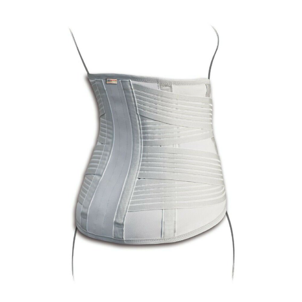 Materiale “C6Tex combinato”, Antistatico (le speciali fibre conduttive assorbono e disperdono le cariche elettriche); Traspirante e Termoregolatore; Batteriostatico e Ipoallergenico; Performante (durante l’attività fisica, diminuisce la concentrazione di acido lattico, migliorando la circolazione sanguigna e l’ossigenazione cellulare). Chiusura anteriore a velcro. Tiranti elastici posteriori per una pressione variabile e personalizzata. Parte lombare sostenuta da stecche modellabili integrate nella fascia (possibilità di inserire stecche più dure per aumentare la rigidezza del corsetto). Zona addominale con rinforzo steccato a spirale in posizione obliqua.