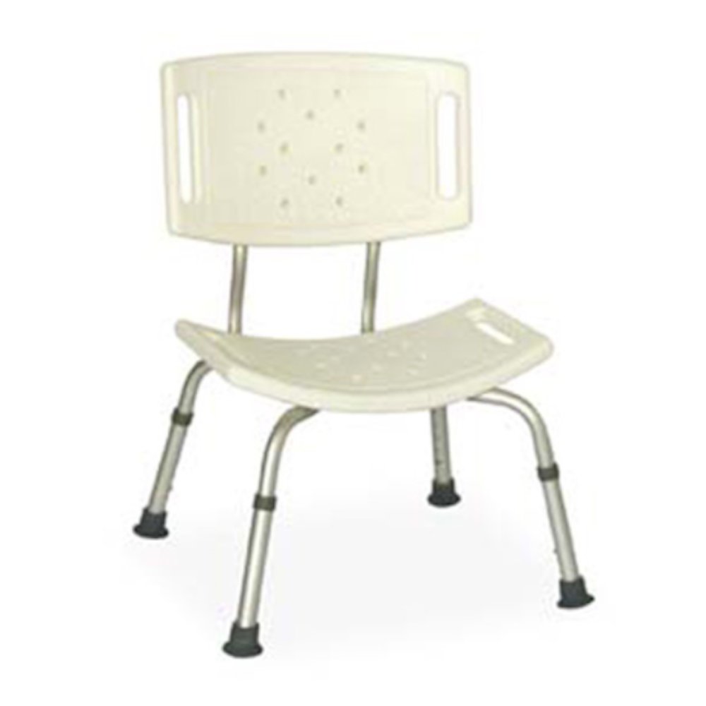 Sedia per doccia con schienale “large” per la cura e l’igiene personale. Struttura in alluminio anodizzato, seduta e schienale in polietilene. Dotato di puntali in gomma antiscivolo. Regolabile in altezza.